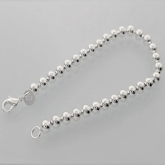 DOTEFFIL 925 Sterling Silver 6mm Hollow Ball Bead Chain Bracelet For Women Wedding Engagement Party Jewelry