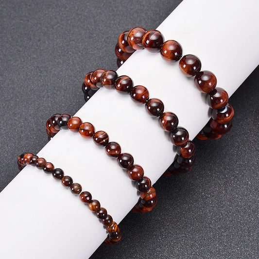 6-12mm Classic Red Tiger Eye Bracelet for Men Women Natural Stone Bracelet Tiger Eye Beads Buddha Braclets Elastic Rope Jewelry
