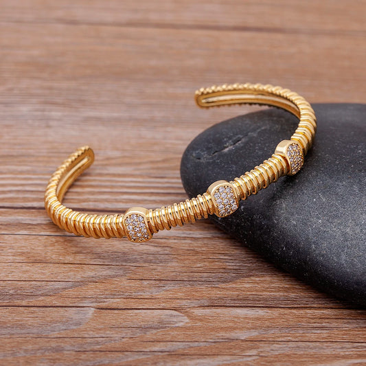 AIBEF 2021 New Fashion 8 Styles Punk Copper Zircon Bracelet for Women Gold Color Crystal Open Cuff Bangles Accessories Jewelry