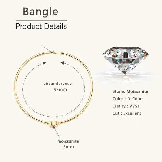 Lnngy 925 Silver Original Certified Bangle Bezel 5mm Moissanite Bracelet For Women Simple Hand Chain 2024 Trend Fashion Jewelry