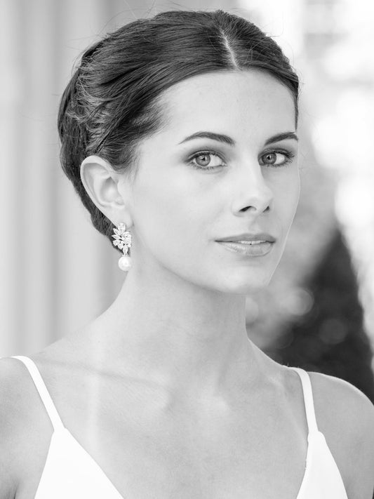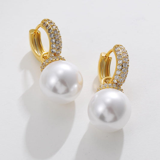 Pearl Dangle Bridal Wedding Earrings with Cubic Zirconia