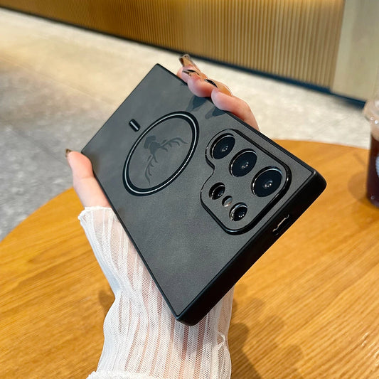 Luxury Leather Magnetic Wireless Charging Phone Case for Samsung Galaxy S24/S23/S22/S21 Plus Ultra - Elk & Deer Design (Black, Galaxy S21)