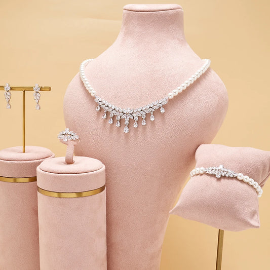 Pearl Necklace Jewelry Sets for Women Cubic Necklace Set Party Engagement Dress Suits Dubai Jewelry Dubai