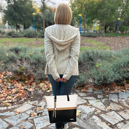 Pomelo Best Soft Faux Leather Women Purses, Large Handbags for Women with Zippered Compartment, Stylish & Oversized Shoulder Tote Bags for Daily Communting, Black and White