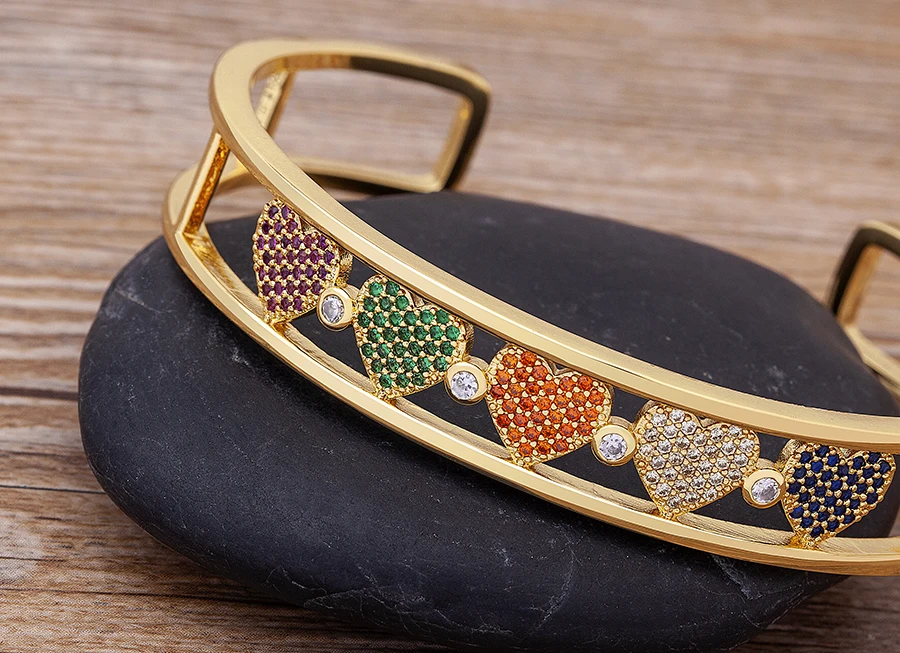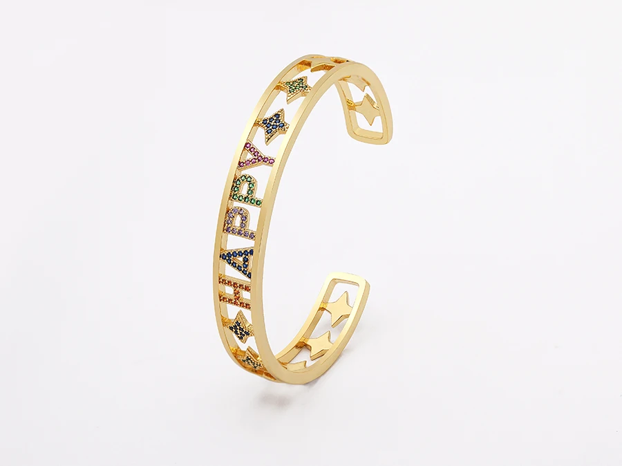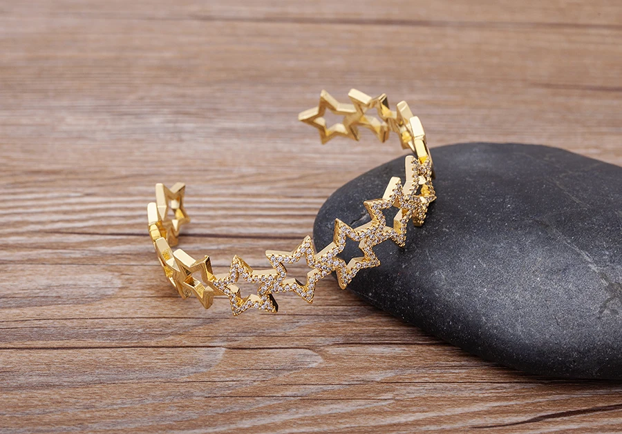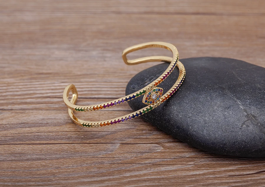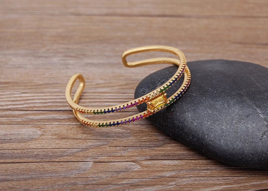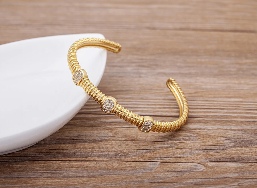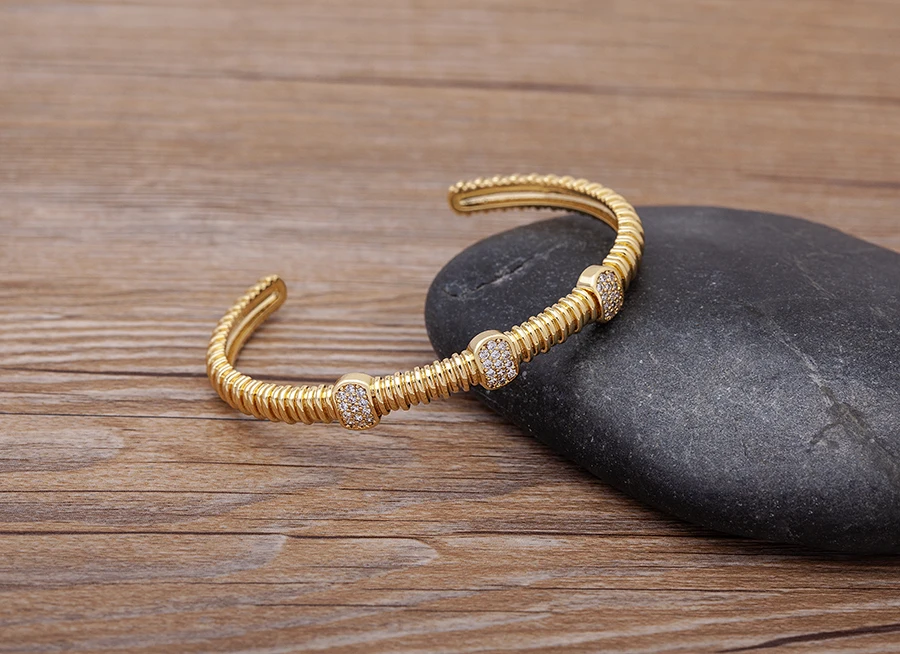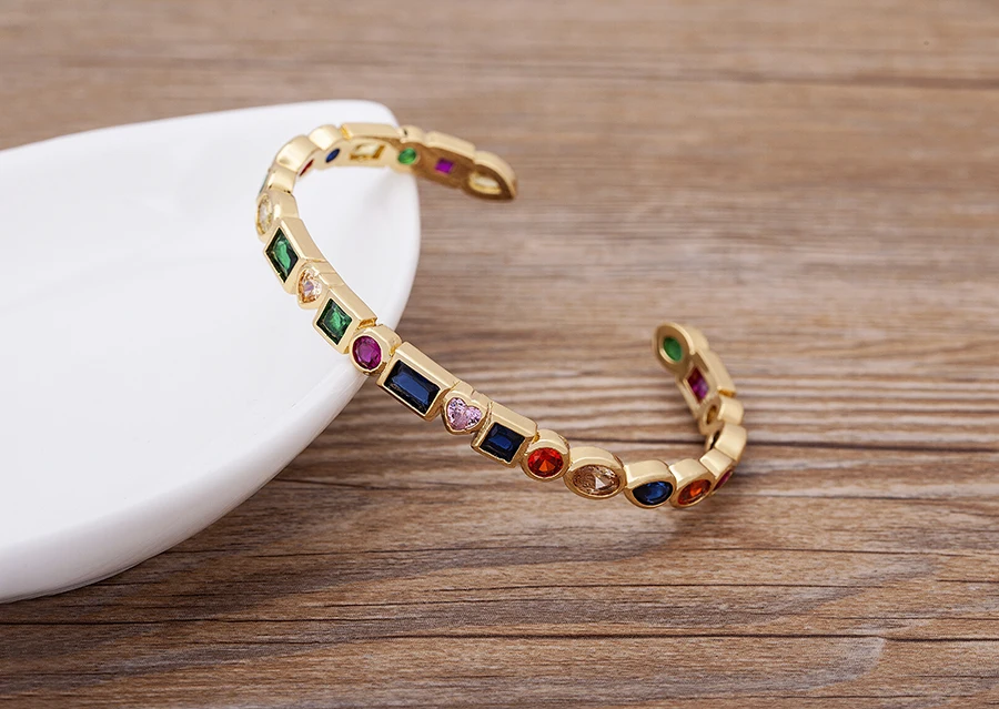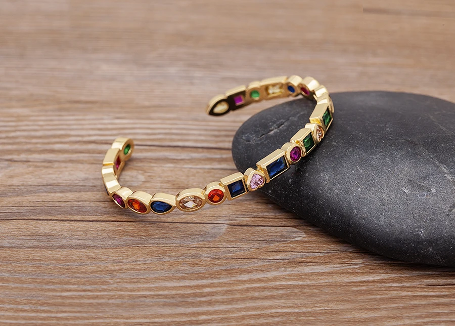 AIBEF 2021 New Fashion 8 Styles Punk Copper Zircon Bracelet for Women Gold Color Crystal Open Cuff Bangles Accessories Jewelry