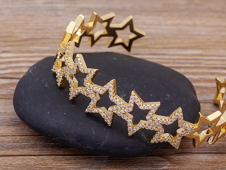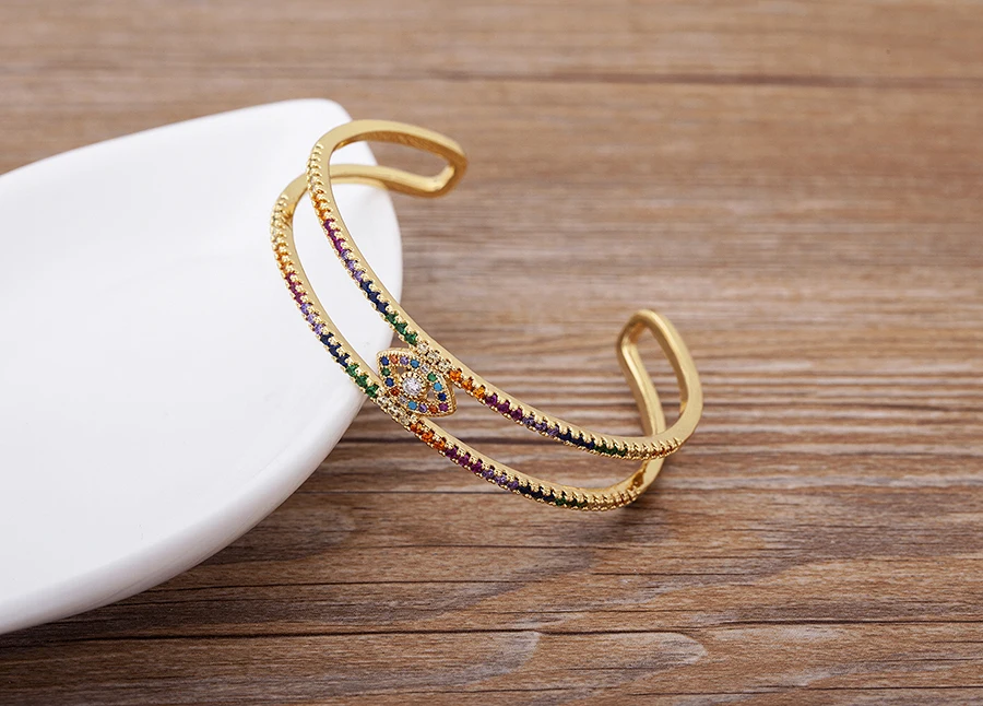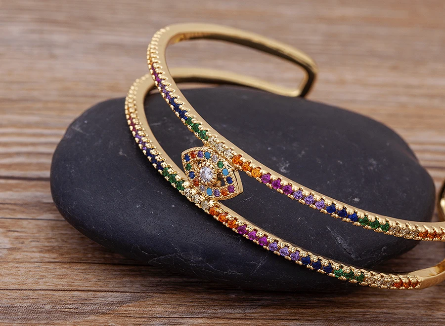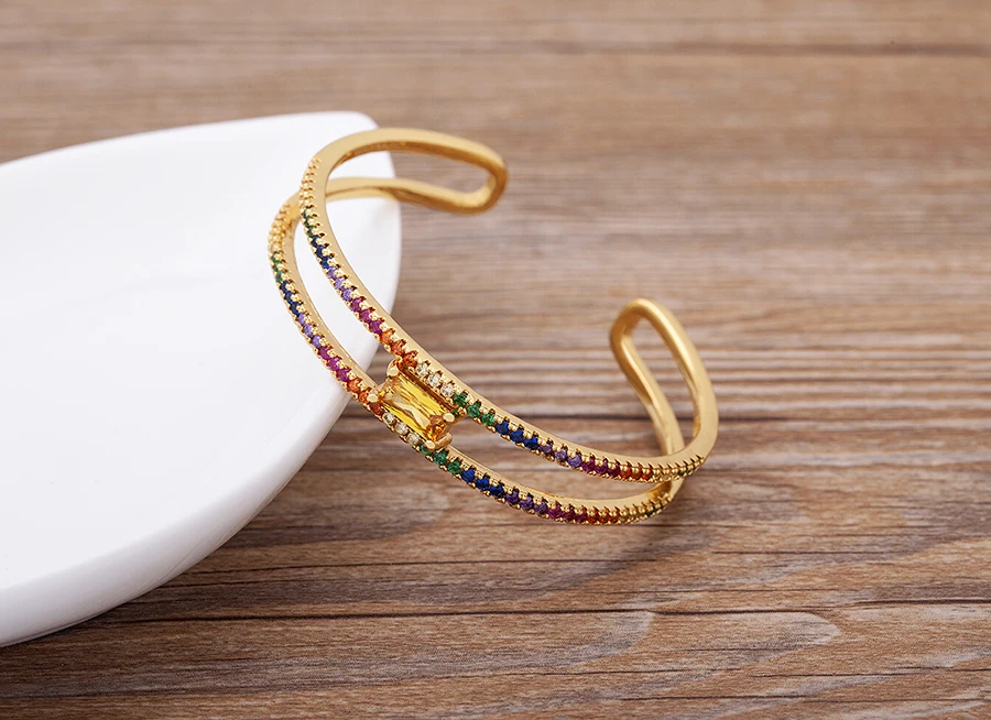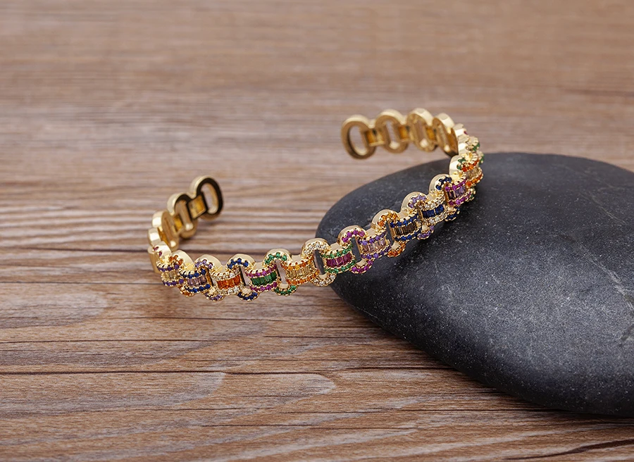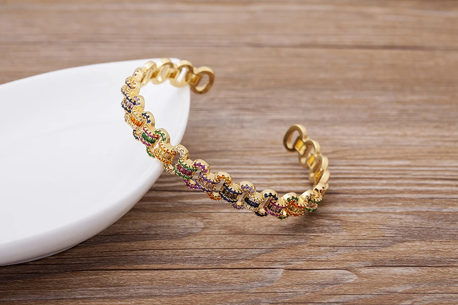 2021 New Fashion 8 Styles Punk Copper Zircon Bracelet for Women Gold Color Crystal Open Cuff Bangles Accessories Jewelry